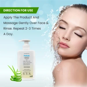 Wash your face with water and take two pumps of cleanser on your hand and massage it on your face in circular motion. Rinse off, thoroughly and pat dry. Follow it up with ProCuta moisturiser.