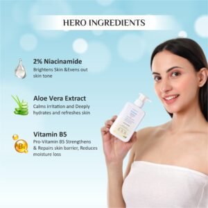 Powered by a synergy of Niacinamide, Aloe Vera, and Pro-Vitamin B5: ...